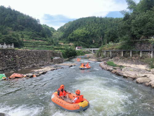 龍溪漂流河道全長(cháng)3500米,是目前浙江中部海拔最高的漂流勝地。區內峽谷縱深、